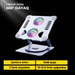 360° fırlanan, qoşa fanlı soyutma və RGB işıqlara malik, 10-15.9 dyüm noutbuklara uyğun qatlana bilən dayaq