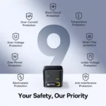 ▶️Şarj cihazı təhlükəsiz və etibarlı doldurmanı təmin edən həddindən artıq gərginlik, cərəyan və qısa qapanma da daxil olmaqla bir sıra daxili qorumalara malikdir