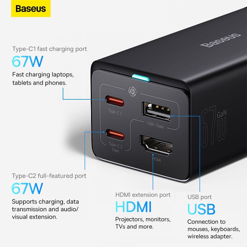 Baseus GaN5 Pro 67W Desktop Charger HDMI