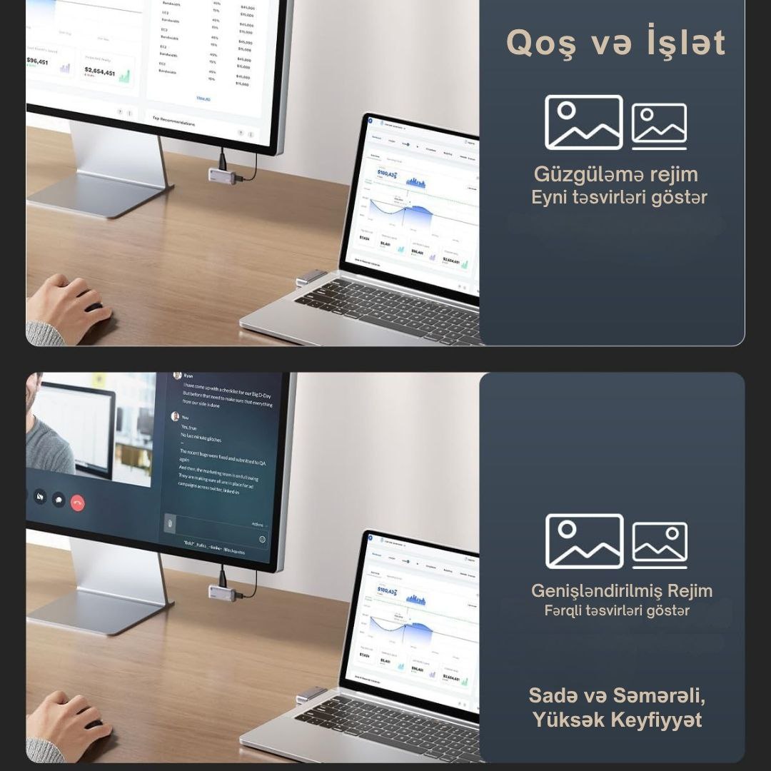 ▶️Laptop/PC,telefondan monitor, televizor və ya proyektora kabellər olmadan əlaqə yaratmaq istəyənlər üçün uyğundur.