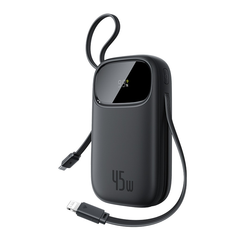 Baseus firmasından 2 portlu, üzərində USB-C və Lightning kabeli olan 45W sürətli çıxışa malik power bank
